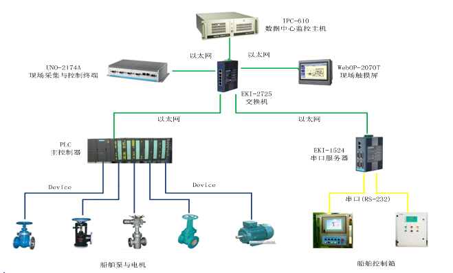 为了保证船舶正常安全行驶,需要对船上所有设备进行可靠的控制。由于船用设备种类繁多,控制要求各不相同,控制设备的形式、参数、性能、所用技术等也各不相同。船舶拥有甲板机械控制箱、舱内设备多元控制箱、柴油机控制箱、挖泥船控制系统、舵桨控制箱等多种控制箱。针对功能固定的设备形成了多种型号的专用控制器,以及可根据用户要求修改和设置参数的通用控制器。控制器都留有通讯接口和远程控制接口,为用户监控系统提供便利。