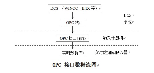 数据采集接口要采集的数据是由实时数据库服务器决定,它根据实时数据库服务器下传的位号名、标识或地址通过串口通讯、DDE、OPC或数据访问接口API等数据交换机制获取监控系统的数据。